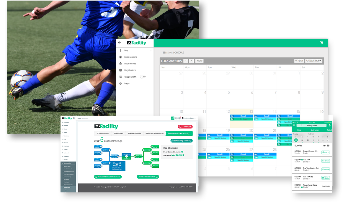 Whether you’re at home or on the go, stay connected to your gym 24/7 from any device with EZFacility’s online soccer scheduling software.