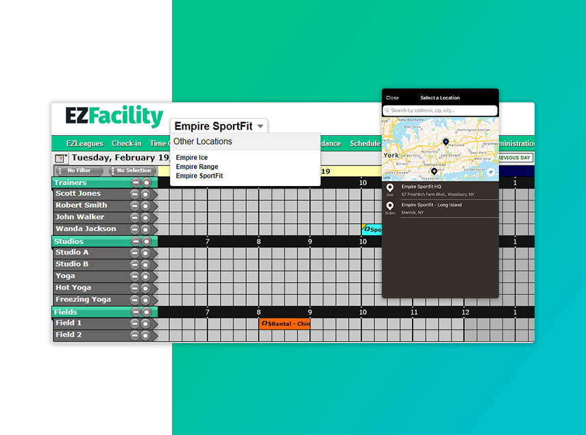As you continue to grow and open additional locations –rest assured that EZFacility is by your side. Enjoy the flexibility to share clients and bookings across locations, report on vital business data from a central hub, engage clients with a multi-location branded app, and more.