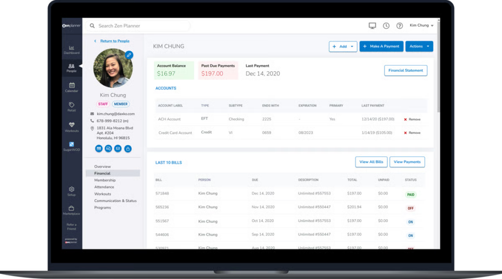 • Payment Processing Fees Apply: Zen Planner Payments is integrated, but transactions include additional processing costs.