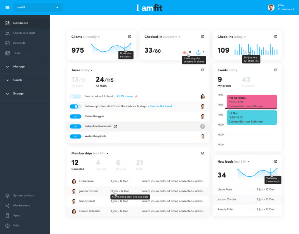 TeamUp is a class-based club management platform built for fitness studios, martial arts academies, yoga/Pilates studios, kids’ activity programs, and training clubs that run structured sessions. It focuses on the core workflows these businesses handle every day: managing memberships, building timetables, handling class registrations and waitlists, tracking attendance, and automating recurring payments.