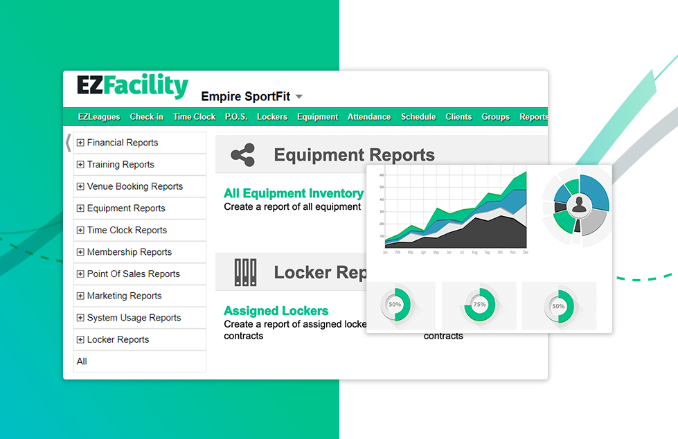 Centralize the management, tracking, and maintenance efforts of your facility lockers. Securely rent and track all facility equipment with confidence. Generate reports to gauge inventory levels and discover your best-selling items.